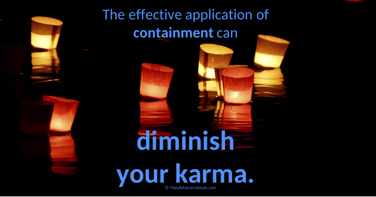 Containment can be an extremely effective tool to assist you in diminishing your karma or reducing the aspects of causality in your life. To apply containment, pause for a minute to consider your different courses of action. Then contemplate the potential repercussions or implications of your ideas or actions. The judicious application of containment can result in a happier life with less karma. ♾ Awaken your Mind ♾