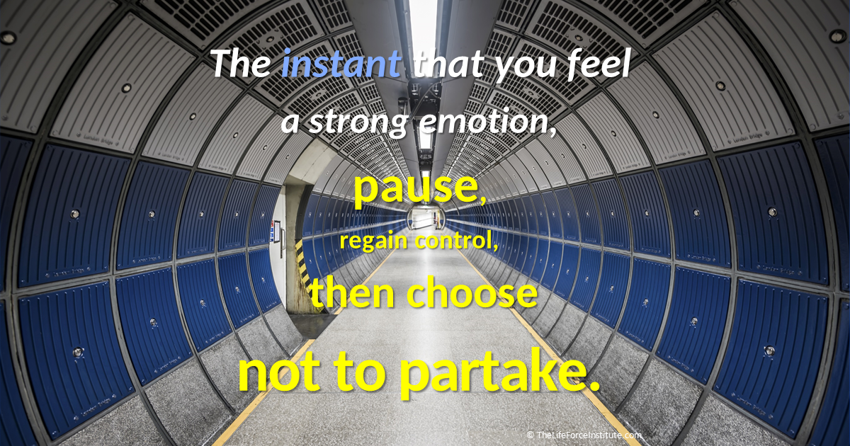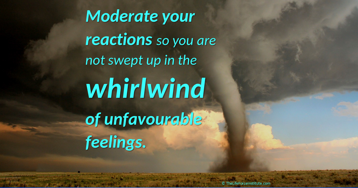 Many of us can become absorbed in our feelings and have restricted self-awareness as a result. You may have wondered how can meditation or similar practices assist in dealing with strong damaging emotions? The key is that many of these techniques provide a way to pause or moderate your thoughts and reactions. Then with your thoughts or reactions paused, you may choose to not be swept up in the whirlwind of damaging emotions and feelings.